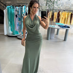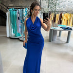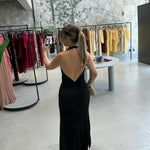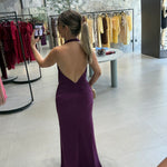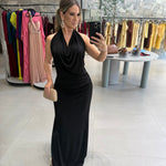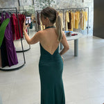 95% POLIESTER 5% ELASTANO/ FRENTE UNICA/COSTAS NUA/ZÍPER ATRAS/FRANZIDO NO QUADRIL