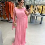 VESTIDO PLISSADO/ TEM BOJO/ ZIPER ATRAS/100% POLIESTER
