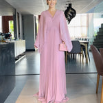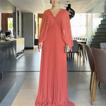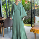 Vestido Plissado Manga Longa