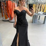 TAFETA COM ELASTANO/ TEM BOJO/ ZIPER ATRAS/ FENDA FRONTAL/ 67% POLIESTER 29% POLIAMIDA 4% ELASTANO